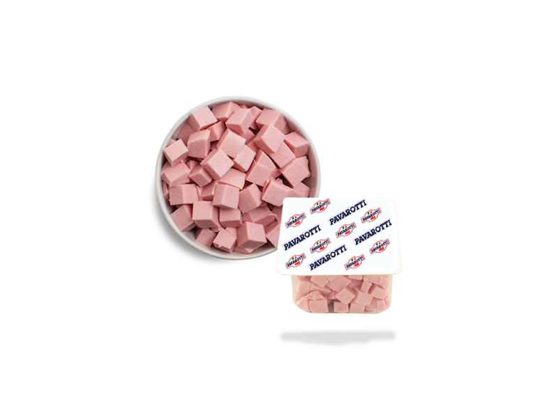 Many bacon cubes without added nitrites, obtained from the best pork meat. Gluten free, no milk derivatives and added polyphosphates, to add as a condiment or to eat like this, sticking them with a toothpick.